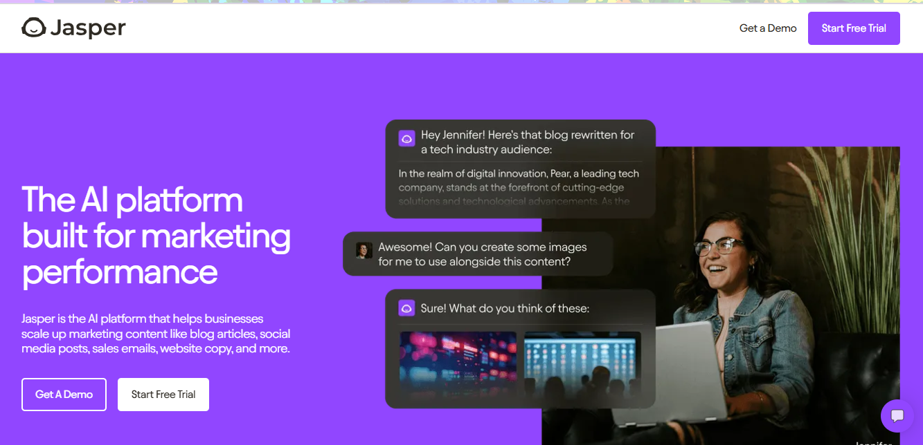 Jasper AI is specially made for creating marketing copy. It has over 50 templates, which makes it flexible to create any type of content. Some of its useful templates are blog content outlines, ad copy, video script outlines, and social media posts.